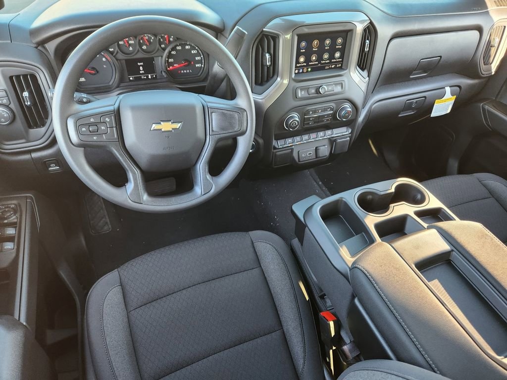 Black 2026 Chevrolet Silverado 1500 Custom RWD 8-Speed Automatic 2.7L I4 Turbocharged DOHC 16V LEV3-SULEV30 310hp In-Stock Certified, 8-Speed Automatic, Jet Black Cloth, 10-Way Power Driver Seat with Lumbar, 120-Volt Bed Mounted Power Outlet, 120-Volt Interior Power Outlet, 3.42 Rear Axle Ratio, 3.5 Monochromatic Display Driver Info Center, 4-Wheel Disc Brakes, 40/20/40 Front Split-Bench Seat, 6 Speakers, 6-Speaker Audio System, ABS brakes, Air Conditioning, Alloy wheels, AM/FM radio: SiriusXM, Apple CarPlay/Android Auto, Auto High-beam Headlights, Automatic Emergency Braking, Bluetooth® For Phone, Brake assist, Bumpers: body-color, Cloth Seat Trim, Color-Keyed Carpeting Floor Covering, Compass, Custom Convenience Package, Custom Value Package, Deep-Tinted Glass, Delay-off headlights, Driver door bin, Driver vanity mirror, Dual front impact airbags, Dual front side impact airbags, Dual Rear USB Ports (charge Only), Electric Rear-Window Defogger, Electronic Cruise Control, Electronic Stability Control, Emergency communication system: OnStar, EZ Lift Power Lock and Release Tailgate, Following Distance Indicator, Forward Collision Alert, Front anti-roll bar, Front Center Armrest w/Storage, Front Frame-Mounted Black Recovery Hooks, Front License Plate Kit, Front Pedestrian Braking, Front reading lights, Front Rubberized Vinyl Floor Mats, Front wheel independent suspension, Fully automatic headlights, HD Rear Vision Camera, Heated door mirrors, High Capacity Suspension Package, Hitch Guidance, Illuminated entry, IntelliBeam Automatic High Beam on/Off, Lane Keep Assist with Lane Departure Warning, LED Cargo Area Lighting, Low tire pressure warning, Manual Tilt Wheel Steering Column, Occupant sensing airbag, OnStar Services Capable, Outside temperature display, Overhead airbag, Overhead console, Panic alarm, Passenger door bin, Passenger vanity mirror, Power door mirrors, Power driver seat, Power Front Windows with Driver Express Up/Down, Power Front Windows with Passenger Express Down, Power Rear Windows with Express Down, Power steering, Power windows, Preferred Equipment Group 1CX, Premium audio system: Chevrolet Infotainment 3, Radio data system, Radio: Chevrolet Infotainment 3 System, Rear 60/40 Folding Bench Seat (folds Up), Rear reading lights, Rear Rubberized-Vinyl Floor Mats, Rear step bumper, Rear window defroster, Remote Keyless Entry, Remote keyless entry, Remote Vehicle Starter System, Security system, SiriusXM Trial Subscription, Speed control, Speed-sensing steering, Split folding rear seat, Standard Tailgate, Tachometer, Teen Driver, Theft Deterrent System (unauthorized Entry), Tilt steering wheel, Tire Pressure Monitoring System, Traction control, Trailering Package, Trip computer, Variably intermittent wipers, Voltmeter, Wheels: 20 x 9 Bright Silver Painted Aluminum, Wi-Fi Hot Spot Capable, 8-Speed Automatic, Jet Black Cloth.