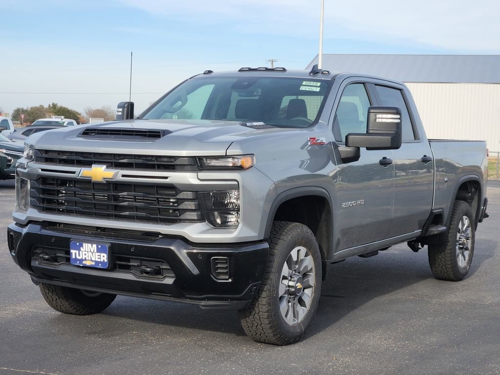 Sterling Gray Metallic 2026 Chevrolet Silverado 2500HD Custom 4WD 10-Speed Automatic Duramax 6.6L V8 Turbodiesel In-Stock Certified, 10-Speed Automatic, 4WD, Jet Black Cloth, 10-Way Power Driver Seat Adjuster with Lumbar, 120-Volt Bed Mounted Power Outlet, 120-Volt Interior Power Outlet, 170 Amp Alternator, 2-Speed Electronic Shift Transfer Case, 220 Amp Alternator, 3 Years OnStar One, 3.5 Diagonal Monochromatic Display DIC, 4-Wheel Disc Brakes, 6 Speakers, 6-Speaker Audio System, 720 Cold-Cranking Amps Heavy-Duty Battery, ABS brakes, Air Conditioning, Alloy wheels, AM/FM radio: SiriusXM with 360L, Apple CarPlay/Android Auto, Auto High-beam Headlights, Auto-Dimming Inside Rear-View Mirror, Black Mirror Caps, Bluetooth® For Phone, Brake assist, Chevrolet Connected Access Capable, Cloth Seat Trim, Color-Keyed Carpeting Floor Covering, Compass, Custom Convenience Package, Custom Value Package, CX Safety Package, Deep-Tinted Glass, Delay-off headlights, Driver door bin, Dual front impact airbags, Dual front side impact airbags, Dual Rear USB Ports (charge Only), Durabed Pickup Bed, Electric Rear-Window Defogger, Electronic Cruise Control with Set and Resume Speed, Electronic Stability Control, Emergency communication system: OnStar, Engine Block Heater, Exhaust Brake, EZ Lift Power Lock and Release Tailgate, Front 40/20/40 Split-Bench Seats with Lockable Storage, Front anti-roll bar, Front Center Armrest w/Storage, Front License Plate Kit, Front reading lights, Front Rubberized Vinyl Floor Mats, Front wheel independent suspension, Fully automatic headlights, HD Rear Vision Camera, Heated and Auto-Dimming Vertical Trailering Mirrors, Heated door mirrors, Heated Vertical Trailering Mirrors, High Idle Switch, Hill Descent Control, Illuminated entry, Lane Change Alert with Side Blind Zone Alert, LED Cargo Area Lighting, LED Smoked Amber Roof Marker Lamps, Locking Tailgate, Low tire pressure warning, Manual Tailgate Function with No EZ Lift, Manual Tilt-Wheel Steering Column, Occupant sensing airbag, Off-Road Suspension, OnStar Services Capable, Outside temperature display, Overhead airbag, Overhead console, Panic alarm, Passenger door bin, Passenger vanity mirror, Power Door Locks, Power door mirrors, Power Front Windows with Driver Express Up/Down, Power Front Windows with Passenger Express Down, Power Rear Windows with Express Down, Power steering, Power windows, Preferred Equipment Group 1CX, Premium audio system: Chevrolet Infotainment 3, Push Button Start, Radio: Chevrolet Infotainment 3 System, Rear 60/40 Folding Bench Seat (folds Up), Rear Cross Traffic Alert, Rear reading lights, Rear Rubberized Vinyl Floor Mats, Rear step bumper, Remote Keyless Entry, Remote keyless entry, Remote Vehicle Starter System, SiriusXM with 360L Trial Subscription, Speed control, Split folding rear seat, Standard Tailgate, Suspension Package, Tachometer, Tilt steering wheel, Traction control, Trip computer, Turn signal indicator mirrors, Ultrasonic Front and Rear Park Assist, Unauthorized Entry Theft-Deterrent System, Variably intermittent wipers, Voltmeter, Wheels: 20 10-Spoke Machined Aluminum, Wi-Fi Hotspot Capable, Winter Grille Cover, Wireless Phone Projection, Z71 Off-Road Package, 10-Speed Automatic, 4WD, Jet Black Cloth.