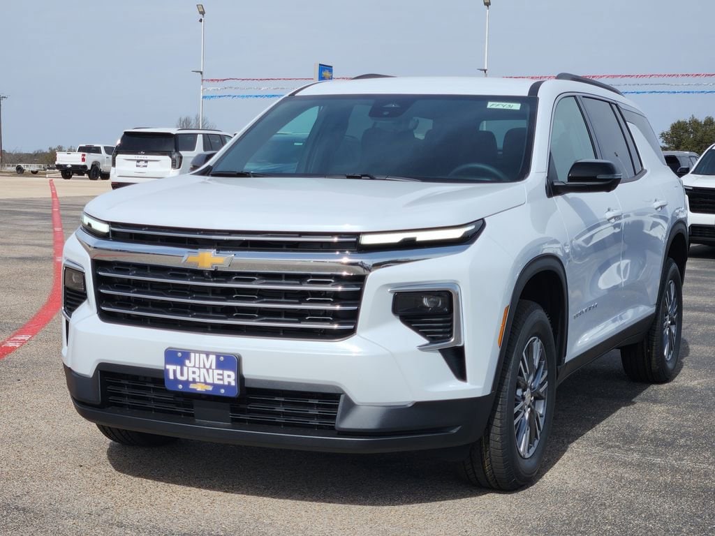 Polar White Tricoat 2026 Chevrolet Traverse LT 1LT FWD 8-Speed Automatic 2.5L DOHC 1st and 2nd Row All-Weather Floor Liners, 3rd Row All-Weather Floor Liner, 3rd row seats: split-bench, 4-Way Manual Front Passenger Seat Adjuster, 4-Wheel Disc Brakes, 6 Speakers, 6-Speaker Audio System Feature, 8-Way Power Driver Seat Adjuster, ABS brakes, Air Conditioning, Alloy wheels, AM/FM radio: SiriusXM with 360L, Apple CarPlay/Android Auto, Auto High-beam Headlights, Automatic temperature control, Brake assist, Bumpers: body-color, Child-Seat-Sensing Airbag, Compass, Delay-off headlights, Driver Confidence Package, Driver door bin, Driver vanity mirror, Dual front impact airbags, Dual front side impact airbags, Electronic Stability Control, Emergency communication system: OnStar, Floor Liner Package, Four wheel independent suspension, Front anti-roll bar, Front Bucket Seats, Front Center Armrest, Front dual zone A/C, Front reading lights, Fully automatic headlights, HD Surround Vision, Heated door mirrors, Heated Driver and Front Passenger Seats, Heated front seats, Heated steering wheel, Illuminated entry, Integrated Cargo Liner, Key Card, Low tire pressure warning, Navigation System, Occupant sensing airbag, Outside temperature display, Overhead airbag, Overhead console, Panic alarm, Passenger door bin, Passenger vanity mirror, Power door mirrors, Power driver seat, Power Liftgate, Power Outlet, Power steering, Power windows, Premium Cloth Seat Trim, Radio data system, Radio: : Audio System w/17.7 Diagonal Display, Rear air conditioning, Rear anti-roll bar, Rear Camera Mirror, Rear Pedestrian Alert, Rear reading lights, Rear window defroster, Rear window wiper, Remote keyless entry, Security system, SiriusXM with 360L Trial Subscription, Speed control, Speed-sensing steering, Spoiler, Steering wheel mounted audio controls, Tachometer, Telescoping steering wheel, Tilt steering wheel, Traction control, Traffic Sign Recognition, Trip computer, Turn signal indicator mirrors, Variably intermittent wipers, Voltmeter, Wheels: 18 Grazen Metallic Machined-Face Aluminum.