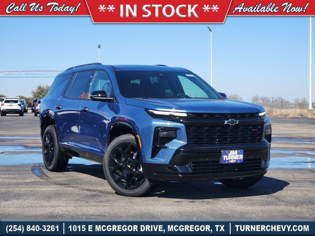 Lakeshore Blue Metallic 2026 Chevrolet Traverse RS FWD 8-Speed Automatic 2.5L DOHC In-Stock Certified, 12 Speakers, 3rd row seats: split-bench, 4-Wheel Disc Brakes, 6-Way Power Front Passenger Seat Adjuster, 8-Way Power Driver Seat Adjuster, ABS brakes, Air Conditioning, Alloy wheels, AM/FM radio: SiriusXM with 360L, Apple CarPlay/Android Auto, Auto High-beam Headlights, Auto tilt-away steering wheel, Auto-dimming door mirrors, Automatic temperature control, Black Lug Nut & Wheel Lock Kit, Bose Premium 12-Speaker Audio System Feature, Brake assist, Bumpers: body-color, Child-Seat-Sensing Airbag, Compass, Delay-off headlights, Driver 4-Way Power Lumbar Seat Adjuster, Driver door bin, Driver vanity mirror, Dual front impact airbags, Dual front side impact airbags, Electronic Stability Control, Emergency communication system: OnStar, Exterior Parking Camera Rear, Four wheel independent suspension, Front anti-roll bar, Front Bucket Seats, Front Center Armrest, Front dual zone A/C, Front Passenger 4-Way Power Lumbar Seat Adjuster, Front reading lights, Fully automatic headlights, Garage door transmitter, Heated door mirrors, Heated Driver and Front Passenger Seats, Heated front seats, Heated rear seats, Heated steering wheel, Illuminated entry, Low tire pressure warning, Memory seat, Navigation System, Occupant sensing airbag, Outside temperature display, Overhead airbag, Overhead console, Panic alarm, Passenger door bin, Passenger vanity mirror, Perforated Leather-Appointed Seat Trim, Power door mirrors, Power driver seat, Power Liftgate, Power passenger seat, Power steering, Power windows, Radio data system, Radio: : Audio System w/17.7 Diagonal Display, Rain sensing wipers, Rear air conditioning, Rear anti-roll bar, Rear reading lights, Rear window defroster, Rear window wiper, Remote keyless entry, Security system, SiriusXM with 360L Trial Subscription, Speed control, Speed-sensing steering, Spoiler, Sport steering wheel, Steering wheel memory, Steering wheel mounted audio controls, Tachometer, Telescoping steering wheel, Tilt steering wheel, Traction control, Trip computer, Turn signal indicator mirrors, Variably intermittent wipers, Ventilated Driver and Front Passenger Seats, Ventilated front seats, Voltmeter, Wheels: 22 High Gloss Black Painted Aluminum.