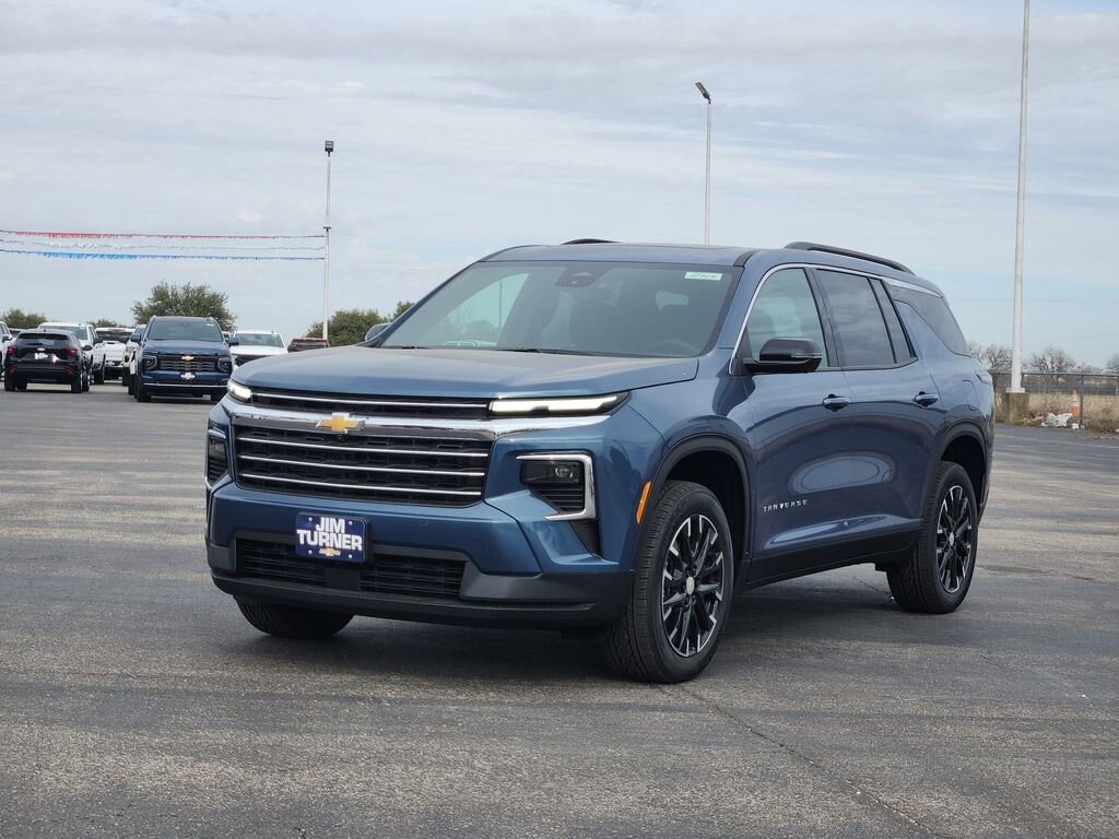 Lakeshore Blue Metallic 2026 Chevrolet Traverse LT 1LT FWD 8-Speed Automatic 2.5L DOHC In-Stock Certified, 3rd row seats: split-bench, 4-Way Manual Front Passenger Seat Adjuster, 4-Wheel Disc Brakes, 6 Speakers, 6-Speaker Audio System Feature, 8-Way Power Driver Seat Adjuster, ABS brakes, Air Conditioning, Alloy wheels, AM/FM radio: SiriusXM with 360L, Apple CarPlay/Android Auto, Auto High-beam Headlights, Automatic temperature control, Black Wheel Lug Nuts, Brake assist, Bumpers: body-color, Child-Seat-Sensing Airbag, Compass, Delay-off headlights, Driver Confidence Package, Driver door bin, Driver vanity mirror, Dual front impact airbags, Dual front side impact airbags, Electronic Stability Control, Emergency communication system: OnStar, Four wheel independent suspension, Front anti-roll bar, Front Bucket Seats, Front Center Armrest, Front dual zone A/C, Front reading lights, Fully automatic headlights, HD Surround Vision, Heated door mirrors, Heated Driver and Front Passenger Seats, Heated front seats, Heated steering wheel, Illuminated entry, Key Card, Low tire pressure warning, Navigation System, Occupant sensing airbag, Outside temperature display, Overhead airbag, Overhead console, Panic alarm, Passenger door bin, Passenger vanity mirror, Power door mirrors, Power driver seat, Power Dual Glass Panoramic Sliding Sunroof, Power Liftgate, Power Outlet, Power steering, Power windows, Premium Cloth Seat Trim, Radio data system, Radio: : Audio System w/17.7 Diagonal Display, Rear air conditioning, Rear anti-roll bar, Rear Camera Mirror, Rear Pedestrian Alert, Rear reading lights, Rear window defroster, Rear window wiper, Remote keyless entry, Security system, SiriusXM with 360L Trial Subscription, Speed control, Speed-sensing steering, Spoiler, Steering wheel mounted audio controls, Sun and Wheel Package, Tachometer, Telescoping steering wheel, Tilt steering wheel, Traction control, Traffic Sign Recognition, Trip computer, Turn signal indicator mirrors, Variably intermittent wipers, Voltmeter, Wheels: 18 Grazen Metallic Machined-Face Aluminum, Wheels: 20 Carbon Flash Metallic Aluminum.