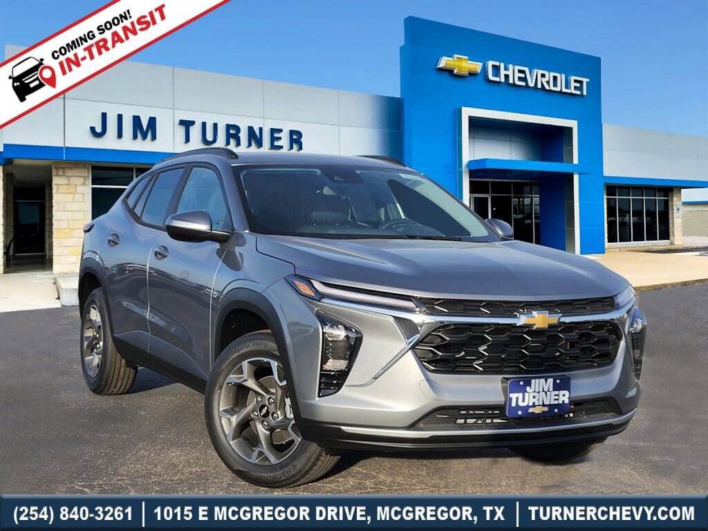Sterling Gray Metallic 2026 Chevrolet Trax LT FWD 6-Speed Automatic ECOTEC 1.2L Turbo In-Stock Certified, 2-Way Adjustable Front Head Restraints, 3.50 Final Drive Axle Ratio, 4-Way Manual Front Passenger Seat Adjuster, 4-Wheel Disc Brakes, 6 Speakers, 6-Speaker Audio System Feature, 6-Way Manual Driver Seat Adjuster, ABS brakes, Adaptive Cruise Control, Air Conditioning, Alloy wheels, AM/FM radio: SiriusXM, Auto High-beam Headlights, Automatic temperature control, Brake assist, Bumpers: body-color, Cloth/Evotex Seat Trim, Compass, Delay-off headlights, Driver Confidence Package, Driver door bin, Driver vanity mirror, Dual front impact airbags, Dual front side impact airbags, Electronic Stability Control, Emergency communication system: OnStar One Essentials, Exterior Parking Camera Rear, Front anti-roll bar, Front Bucket Seats, Front Center Armrest, Front Doors Keyless Open, Front reading lights, Front wheel independent suspension, Fully automatic headlights, Heated Driver and Front Passenger Seats, Heated Power-Adjustable Outside Mirrors, Heated Steering Wheel, Illuminated entry, Lane Change Alert with Side Blind Zone Alert, Low tire pressure warning, LT Convenience Package, Occupant sensing airbag, Outside temperature display, Overhead airbag, Overhead console, Panic alarm, Passenger door bin, Passenger vanity mirror, Power door mirrors, Power steering, Power windows, Premium audio system: Chevrolet Infotainment 3, Radio data system, Radio: AM/FM Stereo Audio System, Rear Cross Traffic Alert, Rear Park Assist, Rear window defroster, Rear window wiper, Remote keyless entry, Security system, SiriusXM Trial Subscription, Speed control, Split folding rear seat, Spoiler, Steering wheel mounted audio controls, Tachometer, Telescoping steering wheel, Tilt steering wheel, Traction control, Trip computer, Variably intermittent wipers, Wheels: 17 Inch Gray-Painted Machined Aluminum Alloy, Wireless Apple CarPlay/Wireless Android Auto, Wrapped Steering Wheel.