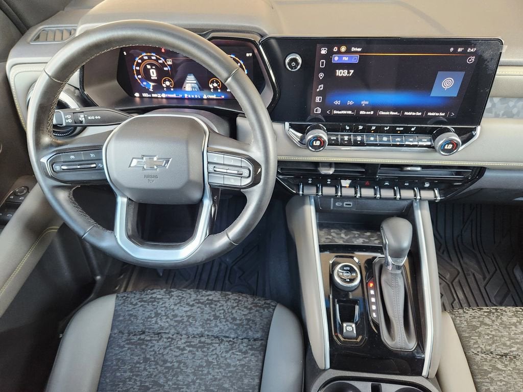 Preferred Equipment Group 4ZR (Automatic Emergency Braking, Chevy Safety Assist, Electronic Automatic Cruise Control, Following Distance Indicator, Forward Collision Alert, Front Pedestrian & Bicyclist Braking, IntelliBeam Automatic High Beam On/Off, Lane Keep Assist w/Lane Departure Warning, and Rear-Window Electric Defogger), Safety Package (Blind Zone Steering Assist w/Trailering, Rear Cross Traffic Braking, and Rear Park Assist), ZR2 Off-Road Package, 4WD, 3.42 Rear Axle Ratio, 4-Way Manual Passenger Seat Adjuster, 4-Wheel Disc Brakes, 6 Speakers, 6-Speaker Audio System Feature, 8-Way Power Driver Seat Adjuster, ABS brakes, Air Conditioning, Alloy wheels, AM/FM radio: SiriusXM, Apple CarPlay/Android Auto, Auto High-beam Headlights, Auto-dimming Rear-View mirror, Automatic temperature control, Brake assist, Cloth/Evotex Seat Trim, Compass, Delay-off headlights, Driver door bin, Driver vanity mirror, Dual front impact airbags, Dual front side impact airbags, Electronic Stability Control, Front anti-roll bar, Front Bucket Seats, Front Center Armrest, Front dual zone A/C, Front fog lights, Front License Plate Kit, Front Passenger Seatback Map Pocket, Front reading lights, Front wheel independent suspension, Heated door mirrors, Heated Driver & Front Passenger Seats, Heated front seats, Illuminated entry, Low tire pressure warning, Navigation System, Occupant sensing airbag, Outside temperature display, Overhead airbag, Overhead console, Panic alarm, Passenger door bin, Passenger vanity mirror, Power door mirrors, Power Driver Lumbar Control Seat Adjuster, Power driver seat, Power steering, Power windows, Radio data system, Radio: 11.3 Diagonal Advanced Color LCD Display, Rear reading lights, Rear step bumper, Rear window defroster, Remote keyless entry, Security system, SiriusXM Radio, Speed control, Speed-sensing steering, Split folding rear seat, Steering Wheel Mounted Audio Controls, Steering wheel mounted audio controls, Tachometer, Telescoping steering wheel, Tilt steering wheel, Traction control, Trip computer, Variably intermittent wipers, Wheels: 17 x 8 Graphite & Oxide Gold Aluminum, and Wireless Phone Projection.